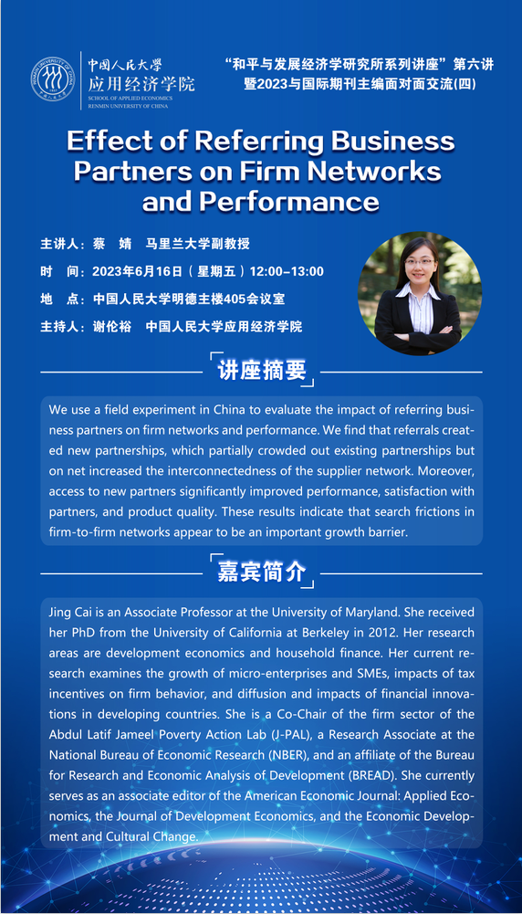 “和平与发展经济学研究所系列讲座”第六讲暨2023与国际期刊主编面对面交流(四)